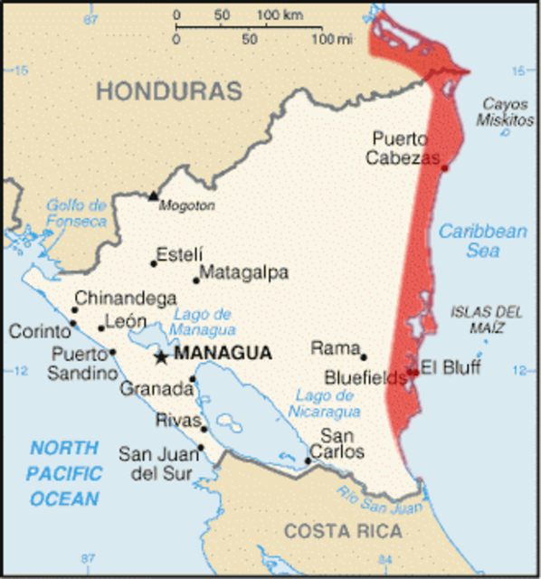 Mapa Miskito. This file is licensed under the Creative Commons Attribution-Share Alike 3.0 Unported license. Via Wikimedia Commons, https://commons.wikimedia.org/wiki/File:Mapa_Miskito.png