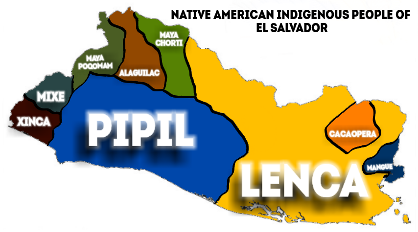 Map of nine Native American indigenous groups of El Salvador in Central America. Lenca, Cacaopera, Maya Poqomam, Maya Chorti, Xinca, Alaguilac, Mixe, Nahua Pipil, Nahua Mangue. Author: Cahokia. This file is licensed under the Creative Commons Attribution-Share Alike 4.0 International license. Via Wikimedia Commons, https://commons.wikimedia.org/wiki/File:NATIVEAMERICANINDIGENOUSPEOPLEOFELSALVADORINCENTRALAMERICAISTHMUS.png