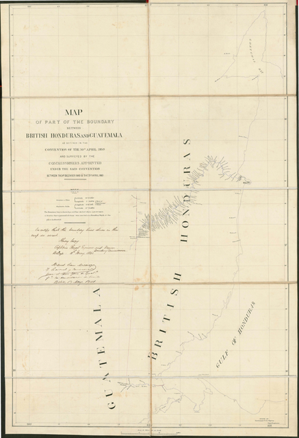 https://www.oas.org/sap/peacefund/belizeandguatemala/timelinedocuments/1889TreatyGuatemalaAndBelize.pdf. Author: Lieutenant V. G. Clayton. https://commons.wikimedia.org/wiki/File:Wyke%E2%80%93AycinenaTreatyMap.png. Public Domain