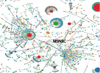 Furthermore, even the Twitter accounts of well-established legacy news outlets do not have the same kind of scope of network. See, for instance, ABC’s node (Figure 6.6), CNN’s node (Figure 6.7), and MSNBC’s node (Figure 6.8).